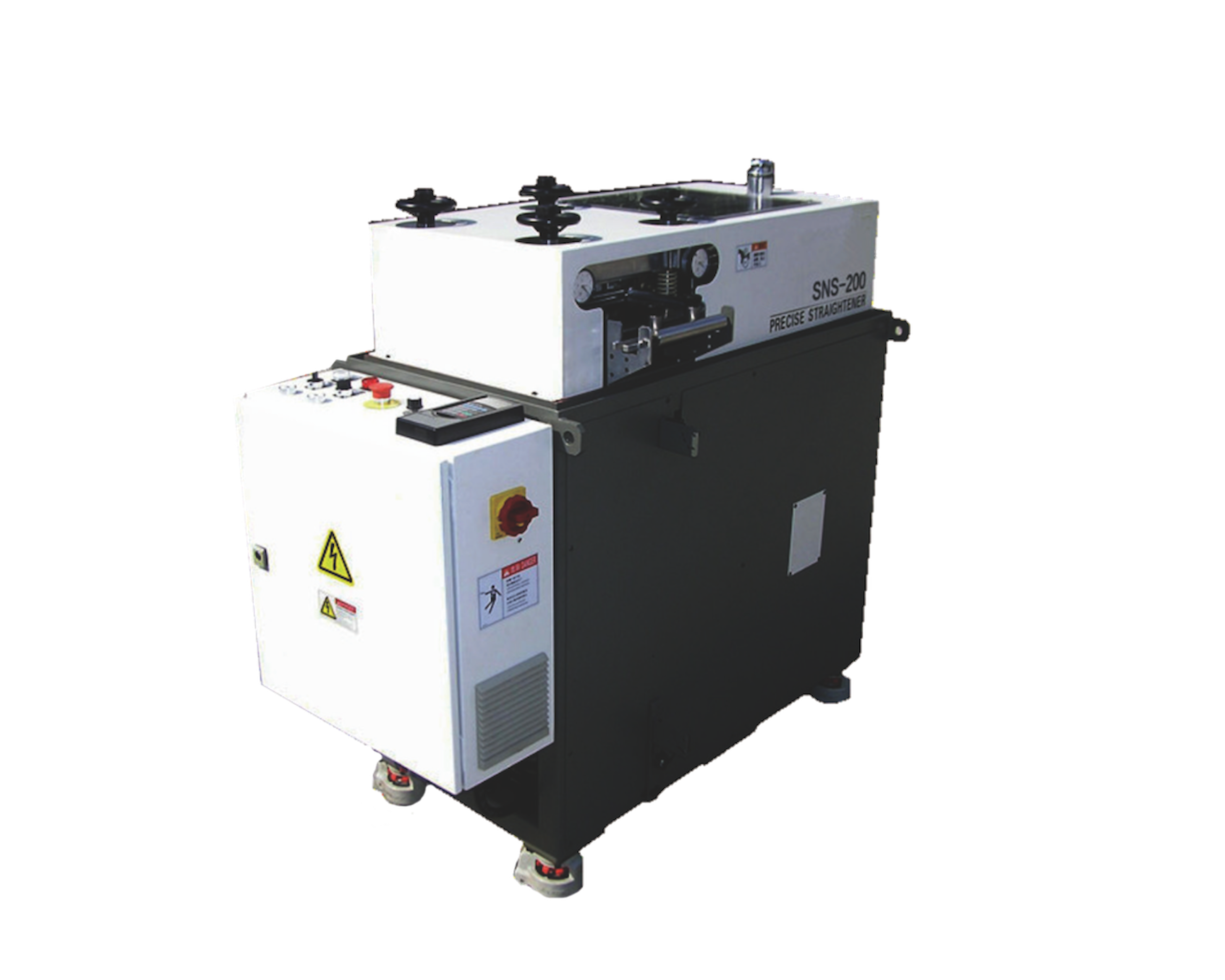双段精密整平机,前段先把材料整成一致向下弯曲弧度,后段整平后更好的消除材料内硬力,适用材料厚度0.1-0.6mm
